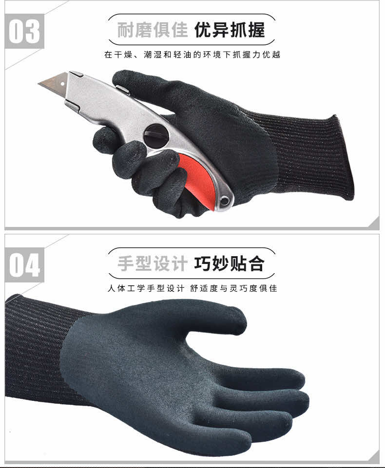 2.先進獨特的丁腈發(fā)泡涂層技術(shù),提供良好的透氣性能, 同時為干燥、潮濕及輕油的作業(yè)環(huán)境提供優(yōu)越的抓握力。