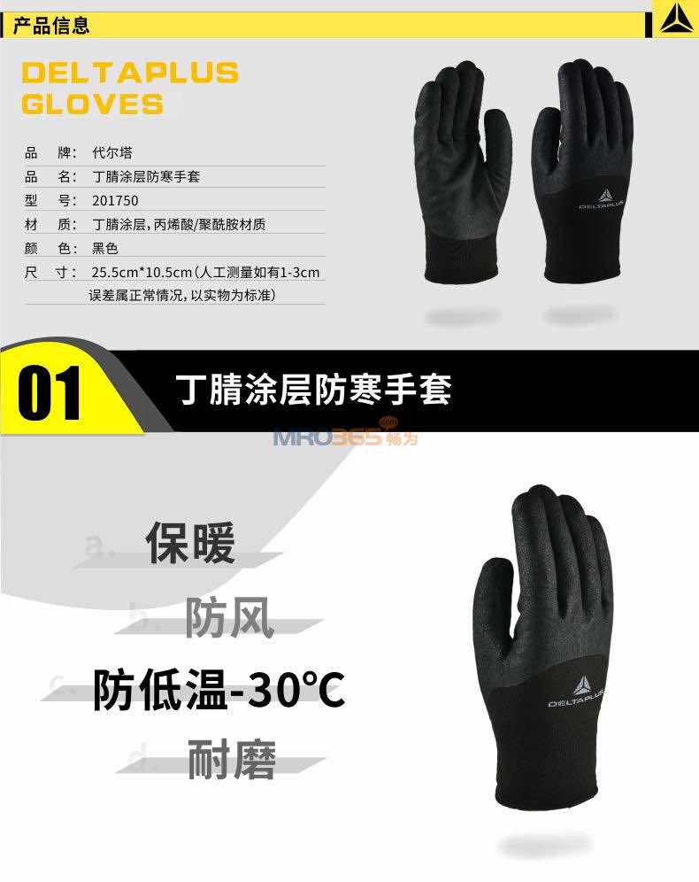代爾塔201750丁腈涂層丙烯酸/尼龍聚合材料防寒手套,適用于冷環(huán)境作業(yè)、冷庫(kù)、戶外運(yùn)動(dòng)等行業(yè)。